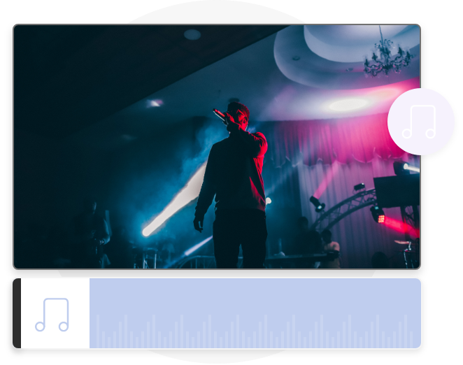Select from our huge music library or upload your own audio file. Easily add it to your video with our simple-to-use editor.