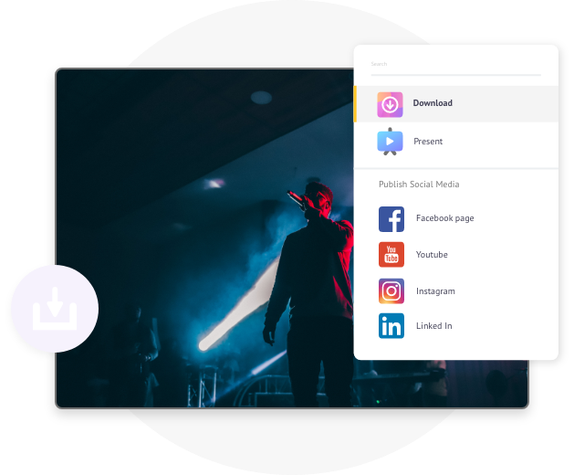 Hit “Download” to download the video to your local computer or share it to 20+ social media platforms from right within the app.