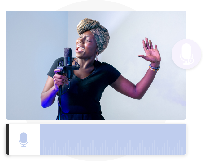 Record your own voiceover or upload a voiceover track or simply paste your text to generate human-like voiceovers and add it to your videos.