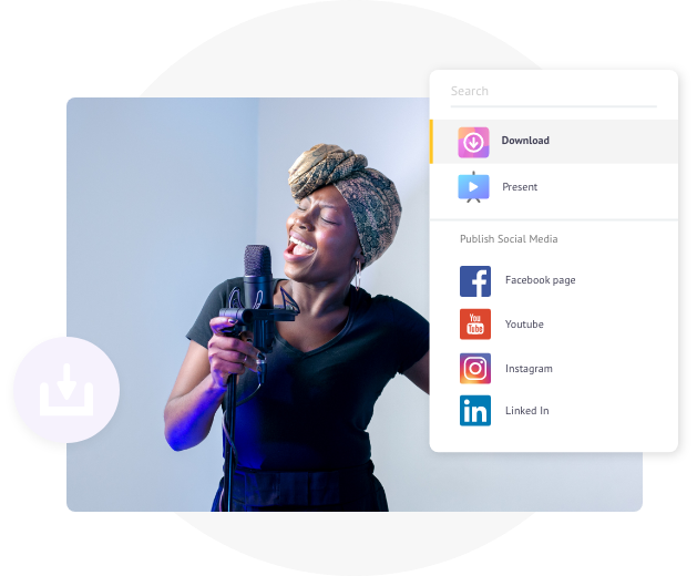 Hit “Download” to download the video to your local computer or share it to 20+ social media platforms from right within the app.