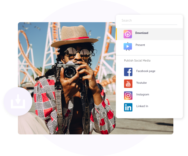 Hit “Download” to download the video to your local computer or share it to 20+ social media platforms from right within the app.