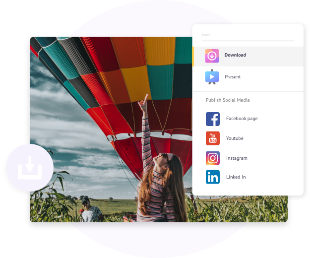 Hit “Download” to download the video to your local computer or share it to 20+ social media platforms from right within the app.